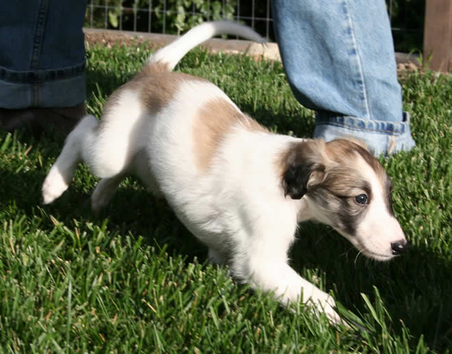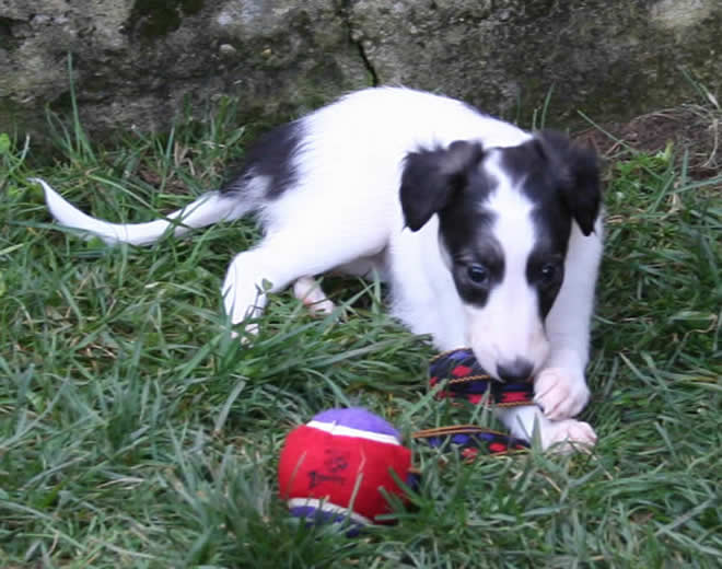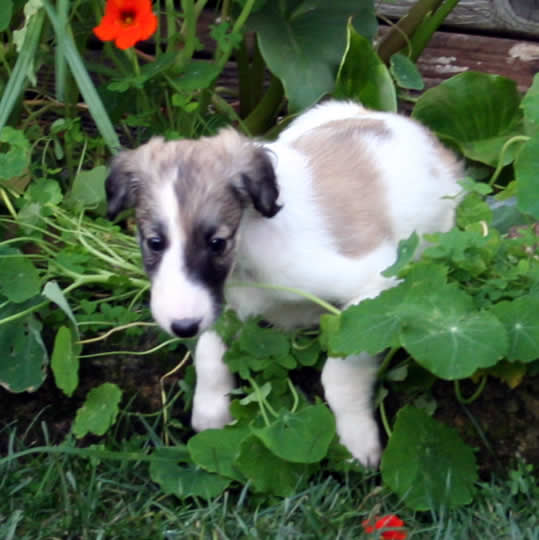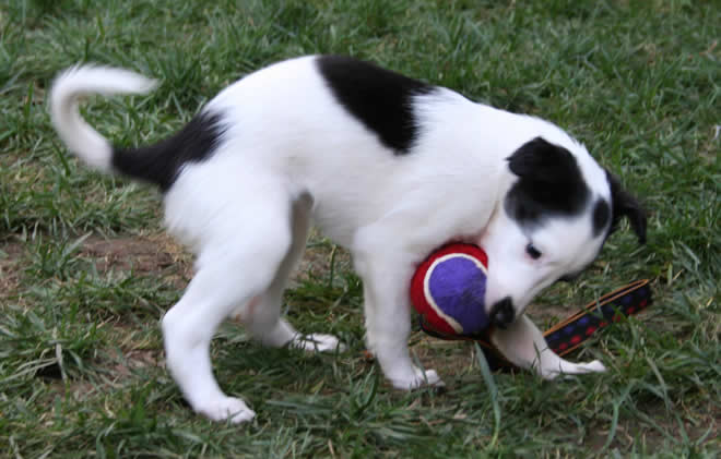 | At five weeks of age, the Garden Roses puppies have grown both physically and mentally. It is so amazing to watch them learn new things each day, from smelling (or eating) roses to playing with toys to the joy of running in tall grass. Several of these puppies are available to the right homes, so feel free to submit one of our puppy questionnaires. Here they are at five weeks old: |